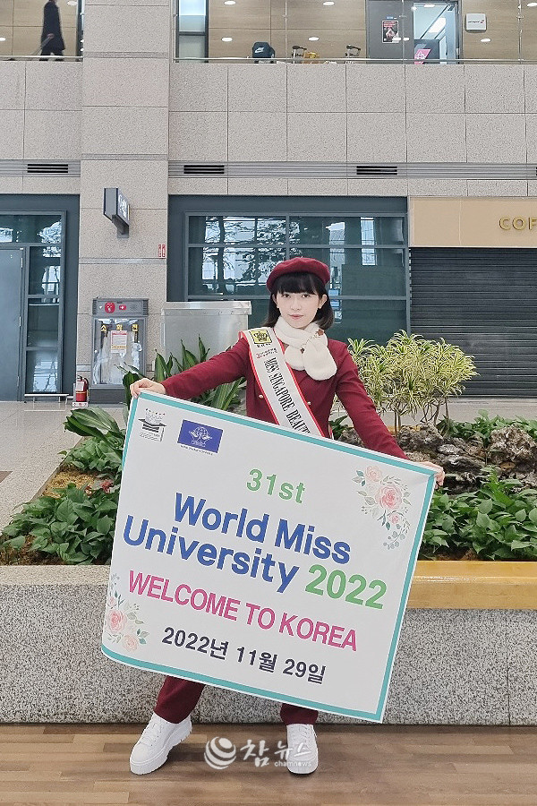 【참뉴스】정광섭 기자 = 오는 21일 한국에서 개최되는 ‘제31회 월드 미스 유니버시티 세계대회(World Miss University) 2022’를 앞두고 지난 달 29일 인천국제공항을 통해 입국한 싱가포르의 콰징루(Quah Jing Ru)가 포즈를 취하고 있다. (사진=월드미스유니버시티 세계조직위원회 제공)