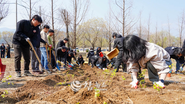 【양구=참뉴스】정광섭 기자 = 2일 오전 강원 양구군 양구읍 고대리 수변공원에서 2026년 제81회 식목일 나무심기 ‘군민이 숲으로 행복한 청춘양구’ 행사가 열렸다.